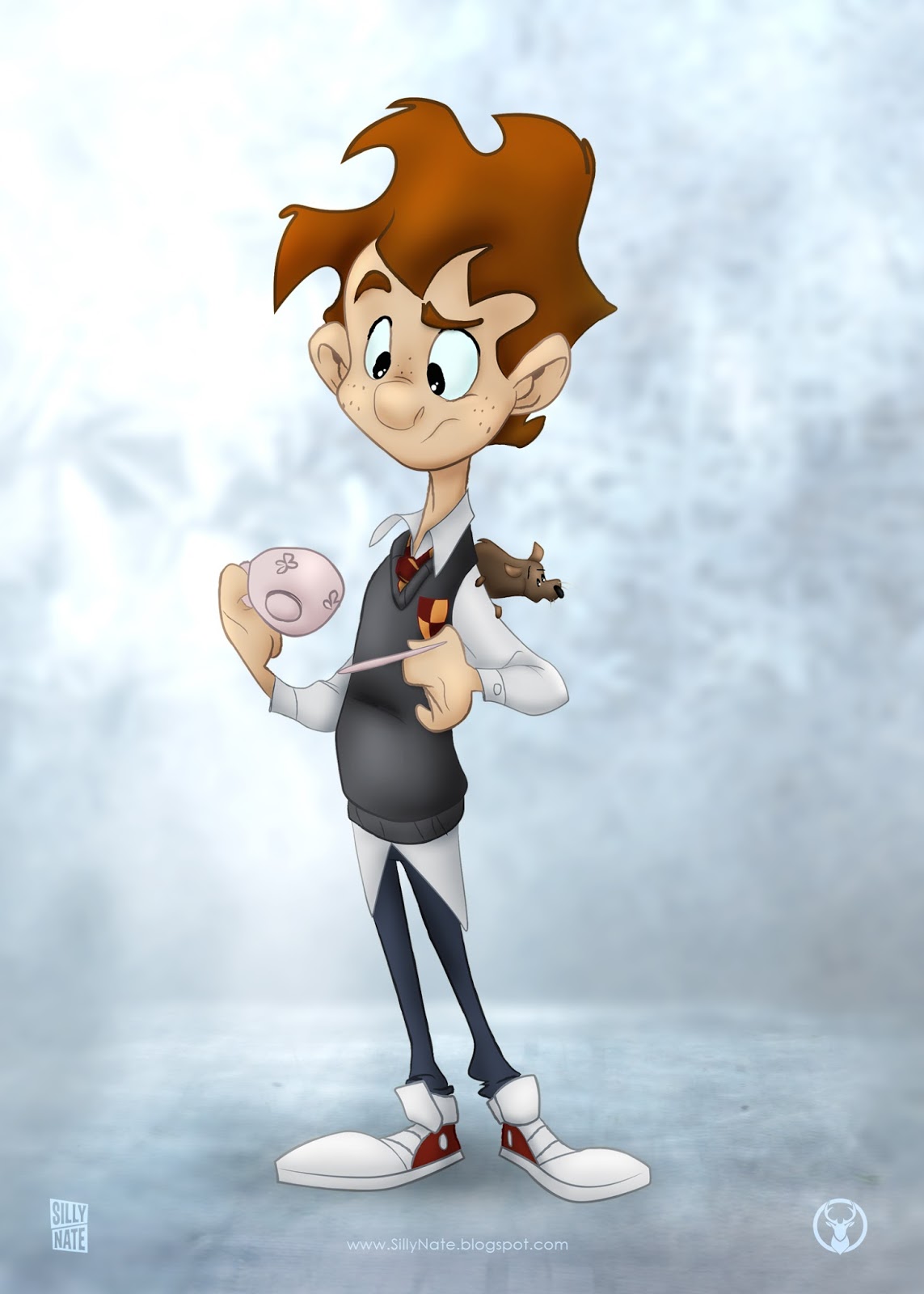 Always fun to draw, here's Ron Weasley, looking at his best buddy's tea leaves.